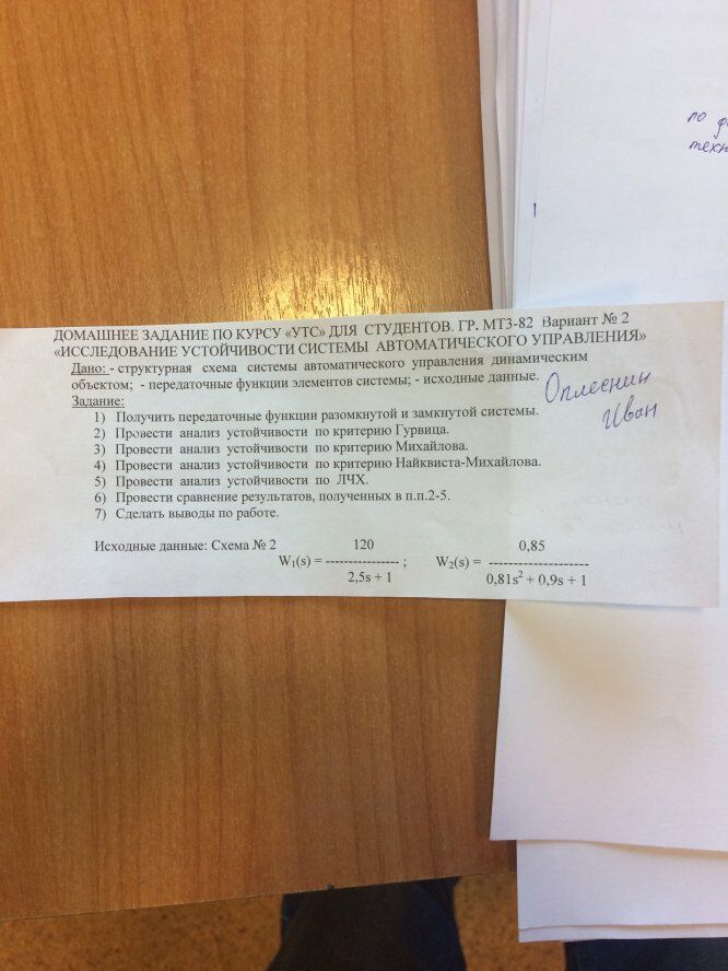 Для студентов МГТУ им. Н.Э.Баумана по предмету Управление техническими системами (УТС)Домашнее задание №1 (Вариант 2)Домашнее задание №1 (Вариант 2)