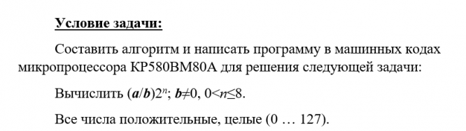 Для студентов МГТУ им. Н.Э.Баумана по предмету Управление техническими системами (УТС)Составить алгоритм и написать программу в машинных кодах микропроцессора KP580BM80AСоставить алгоритм и написать программу в машинных кодах микропроцессора KP580BM80A