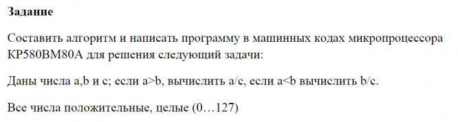 Даны числа a,b и c_ если a больше b, вычислить a делить на c, если a меньше b вычислить b делить на c. Все числа положительные, целые (0…127) .pdf
