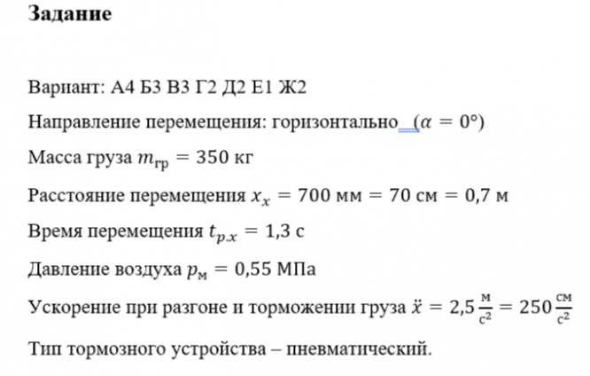 ДЗ 1: Проектирование пневмопривода транспортного устройства
