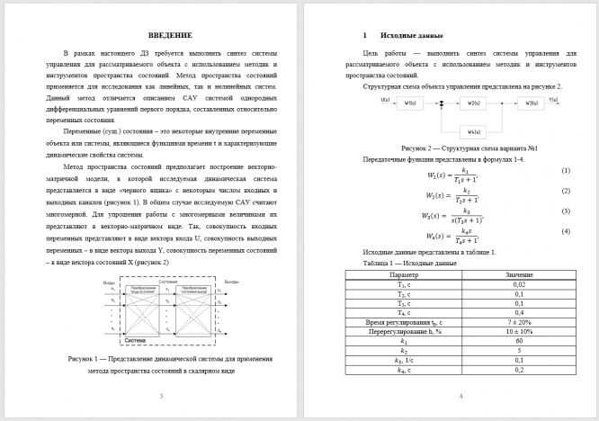 Синтез системы управления для рассматриваемого объекта с использованием методик и инструментов пространства состояний.