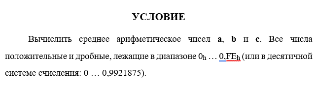 Составление алгоритма и программы вычисления среднего арифметического трех чисел в машинных кодах микропроцессора KP580BM80A