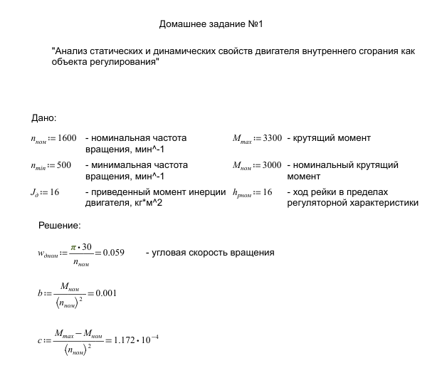 Главная » Учебные материалы » Управление техническими системами (УТС) » Домашние задания » МГТУ им. Н.Э.Баумана » 6 семестр » Номер 1 » Вариант 5-5-А » Анализ статических и динамических свойств двигателя внутреннего сгорания как объекта регулирования