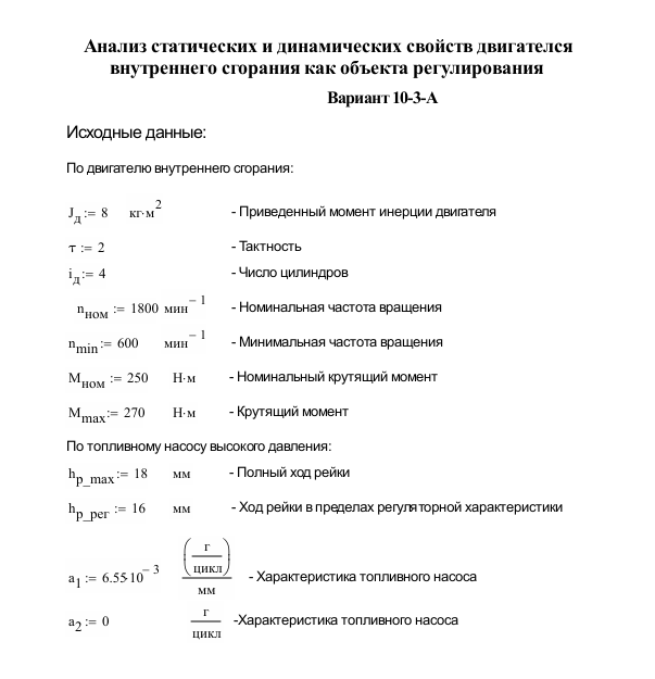 ДЗ 1: Анализ статических и динамических свойств двигателя внутреннего сгорания как объекта регулирования вариант 10-3-А