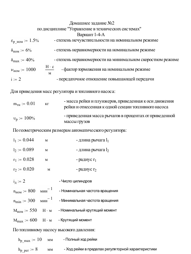 Главная » Учебные материалы » Управление техническими системами (УТС) » Домашние задания » МГТУ им. Н.Э.Баумана » 6 семестр » Номер 2 » Вариант 1-4-А » Анализ статических и динамических свойств всережимного регулятора прямого действия