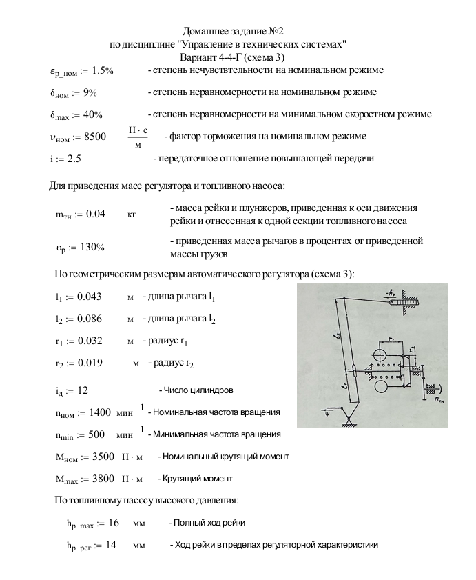 Главная » Учебные материалы » Управление техническими системами (УТС) » Домашние задания » МГТУ им. Н.Э.Баумана » 6 семестр » Номер 2 » Вариант 4-4-Г » Анализ статических и динамических свойств всережимного регулятора прямого действия
