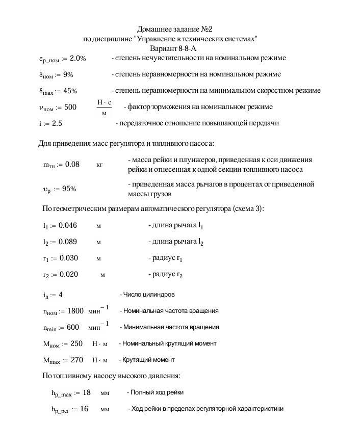 Главная » Учебные материалы » Управление техническими системами (УТС) » Домашние задания » МГТУ им. Н.Э.Баумана » 6 семестр » Номер 2 » Вариант 8-8-А » Анализ статических и динамических свойств всережимного регулятора прямого действия