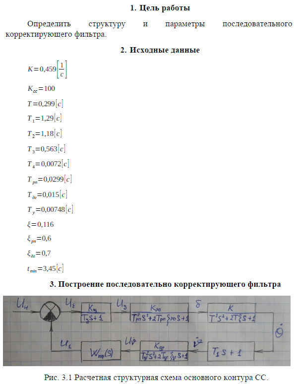 Лабораторная работа: Отчет по лабораторной работе №3 "Синтез корректирующего фильтра системы стабилизации"