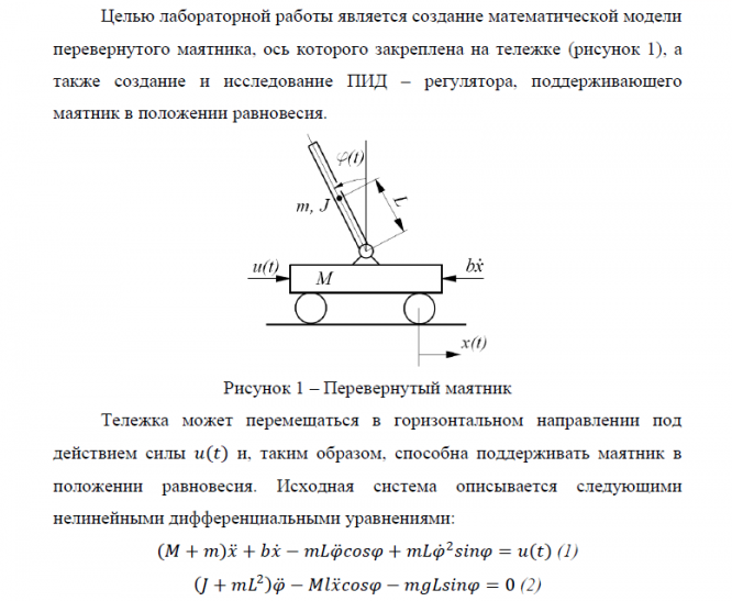 Главная » Учебные материалы » Управление техническими системами (УТС) » Лабораторные работы » МГТУ им. Н.Э.Баумана » 8 семестр » Отчет по лабораторной работе №4 "Система управления положением перевернутого маятника с ПИД-регулятором"