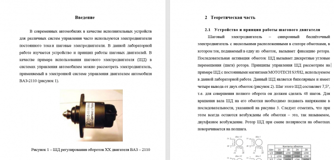 В современных автомобилях в качестве исполнительных устройств для различных систем управления часто используются электродвигатели постоянного тока и шаговые электродвигатели. В данной лабораторной работе изучается устройство и принцип работы шаговых двигателей. В качестве примера использования шагового электродвигателя (ШД) в системах управления автомобилем можно рассмотреть электродвигатель, применяемый в электронной системе управления двигателем автомобиля ВАЗ-2110 (рисунок 1).