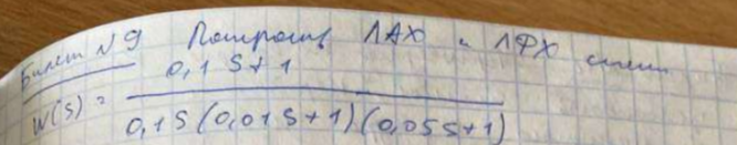 Задача: Построить ЛАХ и ЛФХ системы: W(s)=(0,1s+1)/(0,1s*(0.01s+1)*(0,05s+1))