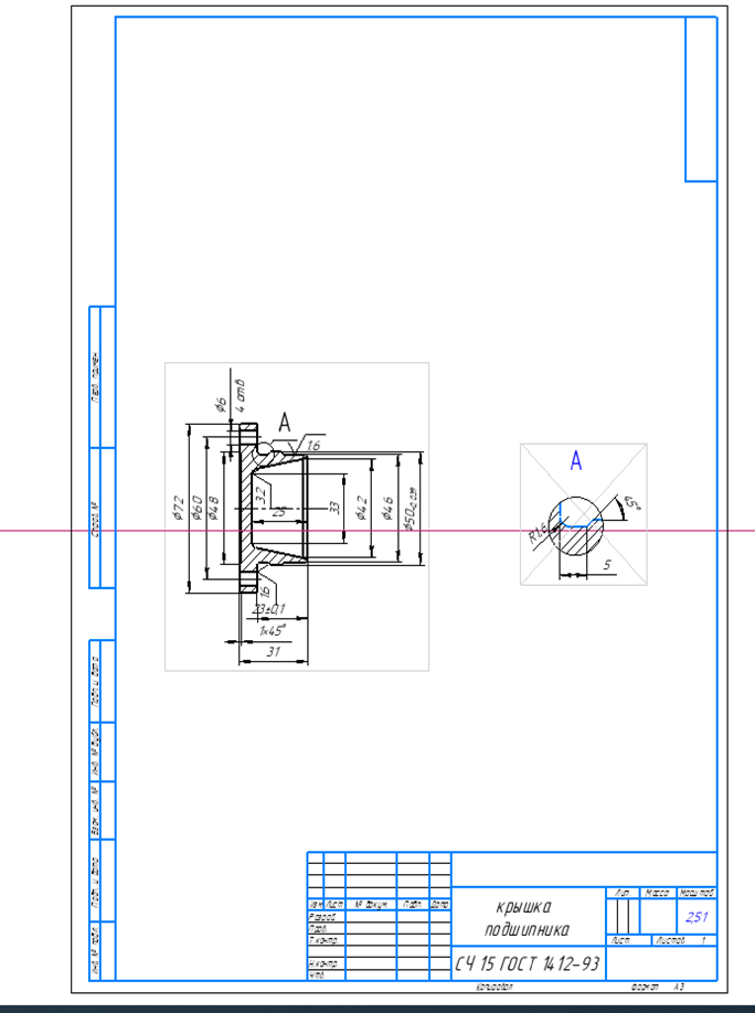 Рис 1. Чертеж детали крышки подшипника