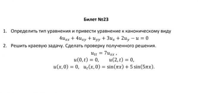 Для студентов МГТУ им. Н.Э.Баумана по предмету Уравнения математической физики (УМФ)РК 1 вариант 23, 2020 г, зачёт.РК 1 вариант 23, 2020 г, зачёт.