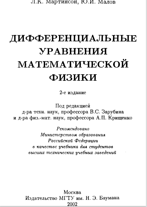 Для студентов МГТУ им. Н.Э.Баумана по предмету Уравнения математической физики (УМФ)Л.К. Мартинсон - Дифференциальные уравнения математической физикиЛ.К. Мартинсон - Дифференциальные уравнения математической физики