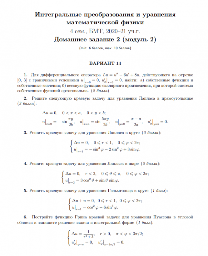 Для студентов МГТУ им. Н.Э.Баумана по предмету Уравнения математической физики (УМФ)14 вариант-ДЗ№2-Канатников14 вариант-ДЗ№2-Канатников