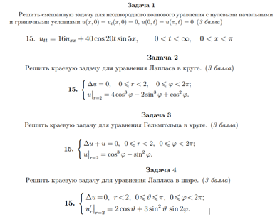ДЗ 2: Неоднородное волновое уравнение, краевая задача для уравнений Лапласа в круге, Гельмгольца в круге, Лапласа в шаре