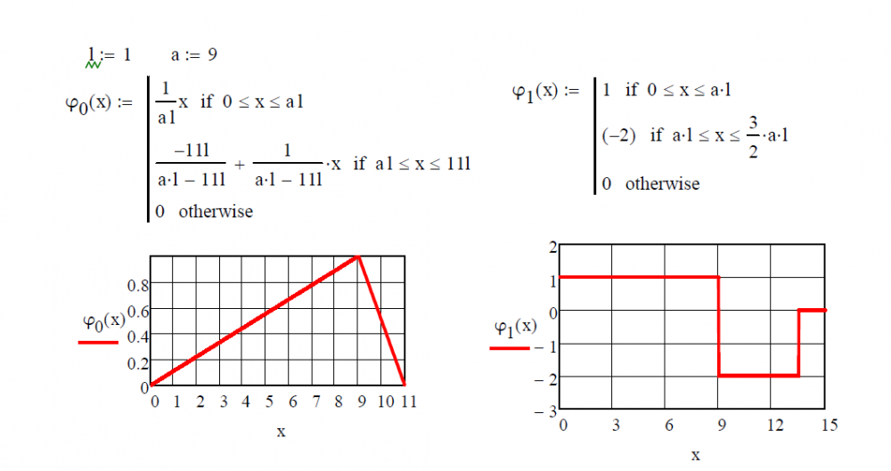 Полностью автоматизированное ДЗ в mathcad 15, при необходимости нужно поменять параметр "a" на свой вариант в группе, изменить граничный параметр "11L" (встречается во многих функциях!) в описании функций под число студентов в вашей в группе +1 (т.е. если студентов 9, то пишем 10L) и указать соответствующее число делений оси абсцисс на графиках. В данной случае у меня был 9 вариант, а в моей учебной группе было 10 человек. Решение представлено 2 способами: методом Д'Аламбера и методом Фурье.