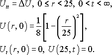 Решить первую смешанную задачу для волнового уравнения на отрезке