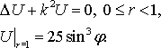 Найти функцию, удовлетворяющую внутри круга уравнению Гельмгольца и принимающую на границе круга заданные значения