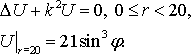 Найти функцию, удовлетворяющую внутри круга уравнению Гельмгольца и принимающую на границе круга заданные значения