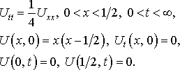 Решить первую смешанную задачу для волнового уравнения на отрезке