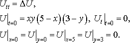 Решить первую смешанную задачу для волнового уравнения в прямоугольнике