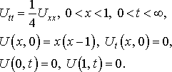 Решить первую смешанную задачу для волнового уравнения на отрезке