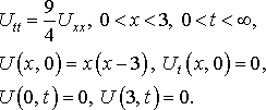Решить первую смешанную задачу для волнового уравнения на отрезке