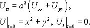 Найти решение первой смешанной задачи для уравнения теплопроводности в круге