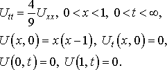 Решить первую смешанную задачу для волнового уравнения на отрезке