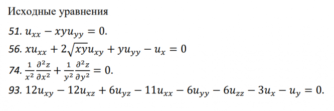 ДЗ 1: Классификация уравнений математической физики вариант 51, 56, 74, 93