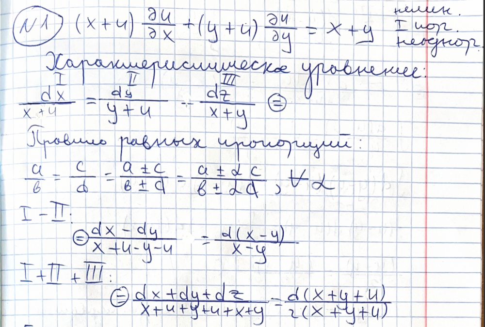 ДЗ №1 - УРАВНЕНИЯ В ЧАСТНЫХ ПРОИЗВОДНЫХ ПЕРВОГО ПОРЯДКА💥💥💥