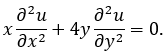 Определить области, где тип дифференциального уравнения в частных производных второго порядка будет одним и тем же. Привести уравнение в каждой из этих областей к каноническому виду.