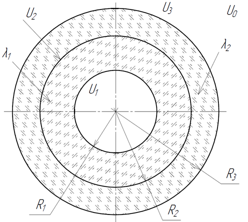 ДЗ: Найти неизвестную стационарную температуру границ двух соосных цилиндрических слоев из разных материалов вариант 12