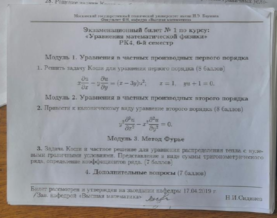 Для студентов МГТУ им. Н.Э.Баумана по предмету Уравнения математической физики (УМФ)1 Билет 2019/2020/20211 Билет 2019/2020/2021