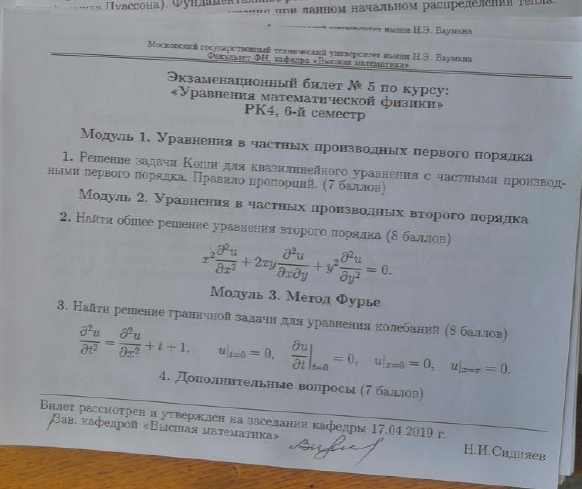 Для студентов МГТУ им. Н.Э.Баумана по предмету Уравнения математической физики (УМФ)5 билет 2019/2020/20215 билет 2019/2020/2021