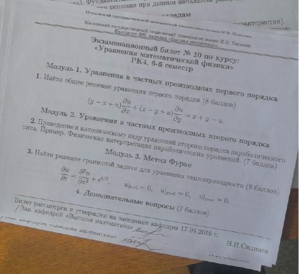 Для студентов МГТУ им. Н.Э.Баумана по предмету Уравнения математической физики (УМФ)10 билет 2019/2020/202110 билет 2019/2020/2021
