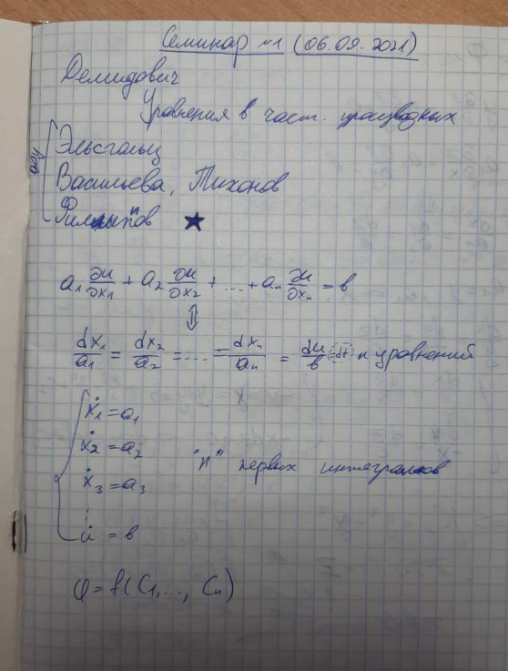 Семинары по Уравнениям математической физики, 120 тетрадных страниц, много задач и разборчивый почерк