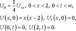 Решить первую смешанную задачу для волнового уравнения на отрезке