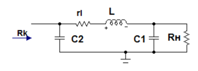 Выполнить расчет генератора на заданные входную мощность Рк, угол отсечки коллекторного тока θ, параметры транзистора и тип ФСУ на двух заданных частотах. Рис.1 – ФСУ в виде П-контура.