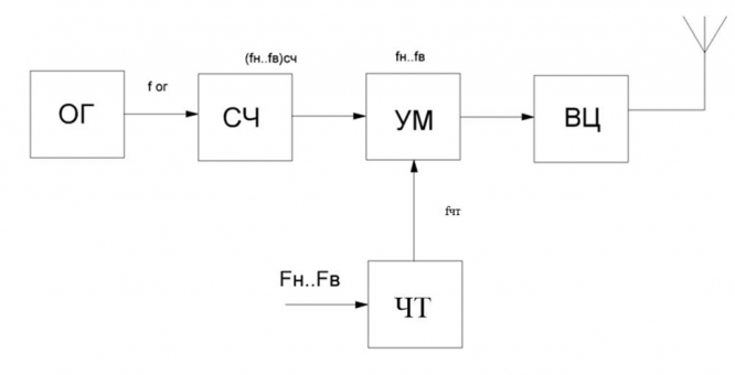 1 СТРУКТУРНАЯ СХЕМА РАДИОПЕРЕДАТЧИКА С ЧАСТОТНОЙ ТЕЛЕГРАФИЕЙ