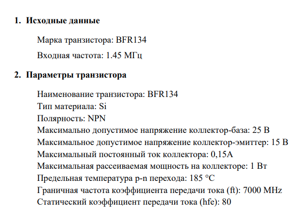 Для студентов МГТУ им. Н.Э.Баумана по предмету Устройства формирования и генерирования сигналов (УФиГС/УФГС/УГиФС/УГФС)Домашнее задание №2 (Марка транзистора: BFR134)Домашнее задание №2 (Марка транзистора: BFR134)