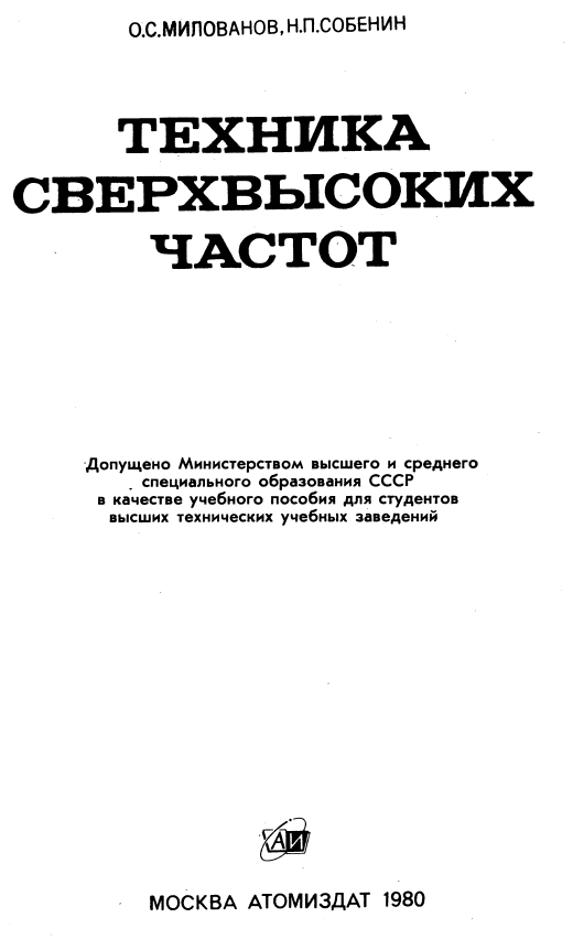 Для студентов НГТУ по предмету Устройства СВЧ и антенны (УСВЧиА)О.С. Милованов - Техника сверхвысоких частотО.С. Милованов - Техника сверхвысоких частот