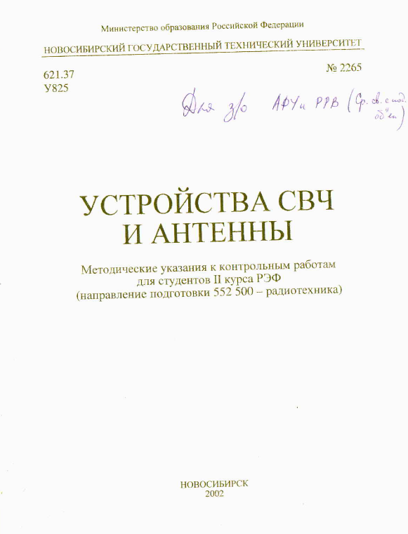 Для студентов НГТУ по предмету Устройства СВЧ и антенны (УСВЧиА)В.Ф. Ким - Устройства СВЧ и антенны - Методические указания к контрольным работамВ.Ф. Ким - Устройства СВЧ и антенны - Методические указания к контрольным работам