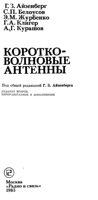 Для студентов НГТУ по предмету Устройства СВЧ и антенны (УСВЧиА)Г.З. Айзенберг - Коротко-волновые антенныГ.З. Айзенберг - Коротко-волновые антенны