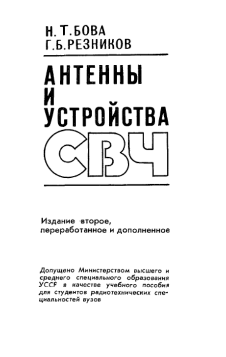 Книга: Н.Т. Бова - Анетенны и устройства СВЧ