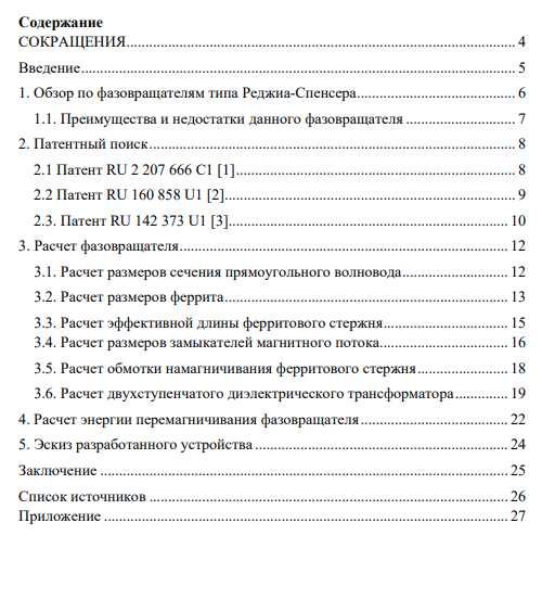 В данной работе проведен анализ и расчеты ферритового фазовращателя, работающего по принципу Реджиа-Спенсера на частоте 9,375 ГГц с прямоугольным ферритовым стержнем.