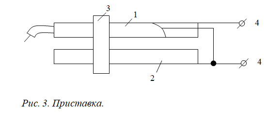 • 2, 3. Трубки, внутри трубки 3 проходит коаксиальный кабель, оплетка которого соединена внутри с трубкой 3, а жила – с трубкой 2;