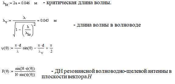 • 4. Рассчитать и построить ДН резонансной ВЩА со щелями на узкой стенке волновода. Принять: число щелей N = 8; расстояние между щелями мм; λ = 32 мм; а = 23 мм.