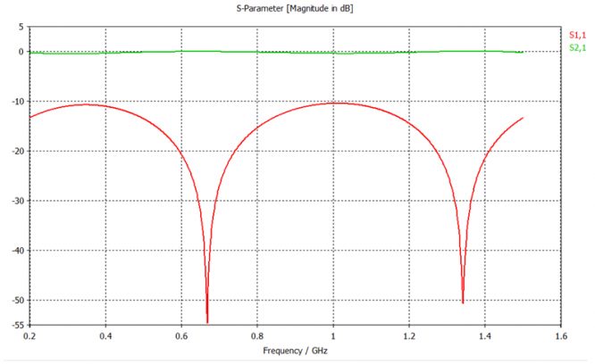 К отчету приложить графики зависимости S-параметров от частоты в диапазоне от 0,5 до 2,5 ГГц.